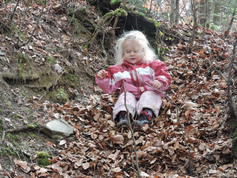 Der immer gleich bleibende Rahmen (Weg, Lieder, Geschichten, Rituale) geben den Kindern Sicherheit. Erst wenn sie sich sicher fühlen in der neuen Umgebung und innerhalb der Gruppe, entdecken sie voller Neugier unseren Waldplatz als grossen Spiel- und Bewegungsraum. Innerhalb der abgemachten Grenzen dürfen sie sich frei bewegen und tätig sein. Auf Wunsch des Kindes natürlich mit Begleitung durch eine Leiterin.