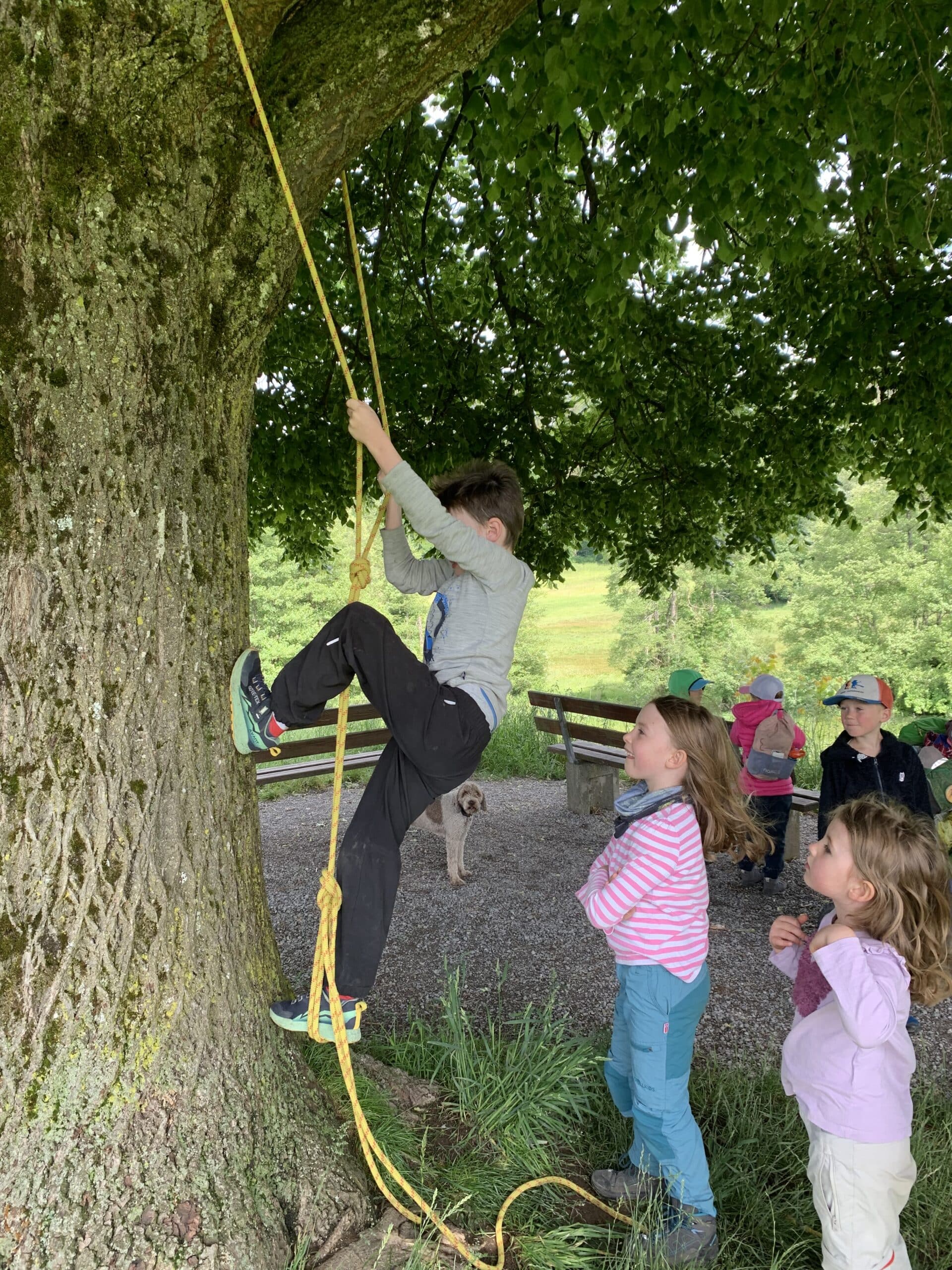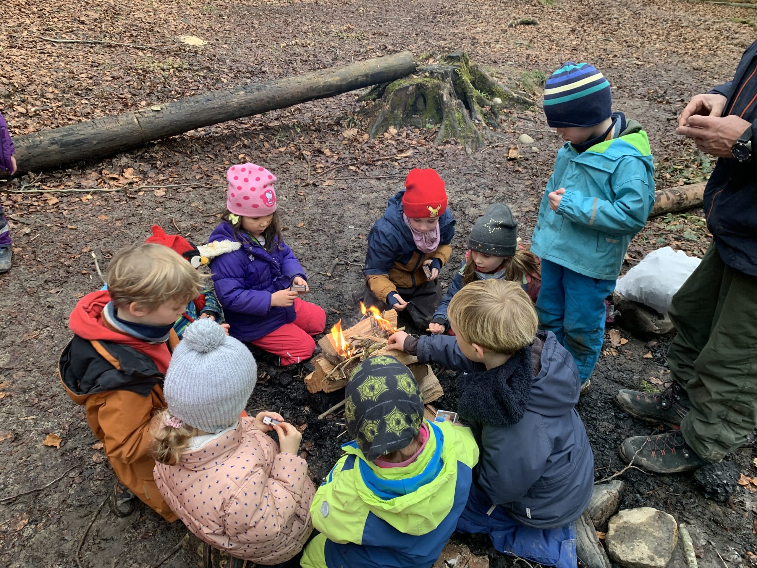 Nach einem gemeinsamen Anfangsritual machen wir uns auf den Weg in den Wald. Dabei gibt es schon ganz viel zu beobachten: Spielerisch entdecken wir die Natur und die Tiere und erleben die jahreszeitlichen Veränderungen. Am Waldplatz angekommen haben die Kinder Zeit zum freien Spiel: Sie dürfen sich innerhalb eines vereinbarten Gebietes frei bewegen, mit Seilen, Sackmessern und Sägen (letztere zwei unter Aufsicht) werken und mit Naturmaterialien und den anderen Waldkindern kreativ tätig sein. Da wir zwei Leiter sind, haben wir die Möglichkeit, parallel zum freien Spiel auch eine geführte Aktivität anzubieten. Bei einem von uns mitgebrachten Zvieri sammeln wir neue Kräfte. Manchmal dürfen sich die Kinder auch im Feuermachen üben und über der wärmenden Glut etwas bräteln. Gestärkt spielen wir noch ein lustiges Spiel oder hören eine Abschlussgeschichte. Danach geht es auf den Heimweg an der Waldrutschbahn vorbei zur Bushaltestelle Gattikerhöhe.